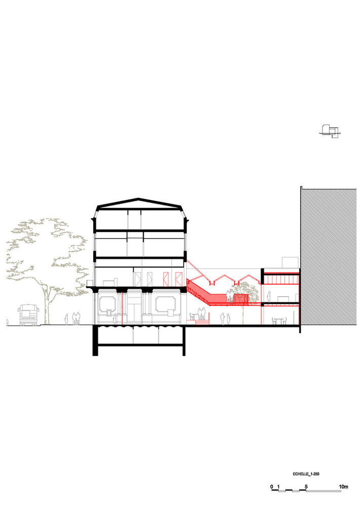 L’ensemble des locaux du siège social des laboratoires de phytothérapie SUPER DIET prend place autour d’un atrium vitré. Véritable pièce centrale du projet, ce nouvel espace crée les conditions d’accueil, de distribution et de lumière nécessaires à la nouvelle activité du bâtiment. La démarche de réhabilitation s’appuie sur la mise en œuvre de matériaux et de procédés à faible impact environnemental : conception bioclimatique de l’atrium, utilisation du bois et de matériaux biosourcés, patio planté…
