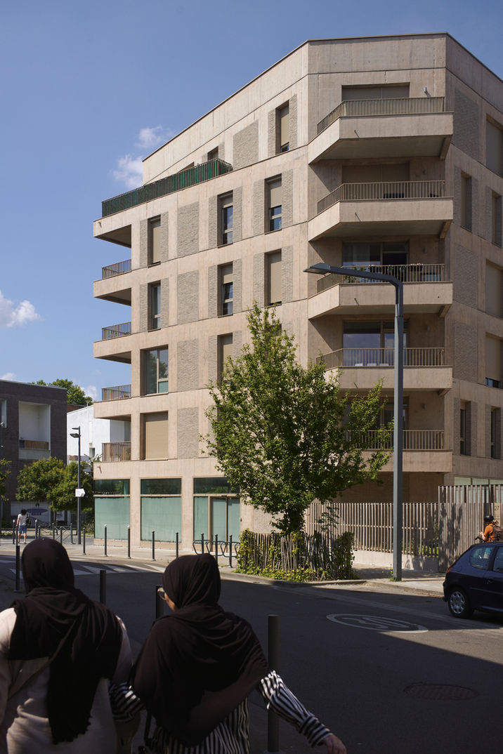 Situés à l’angle de la place Méditerranée et de la rue de l’Europe, les 52 logements s’installent dans deux ensembles bâtis distincts aux façades identiques.